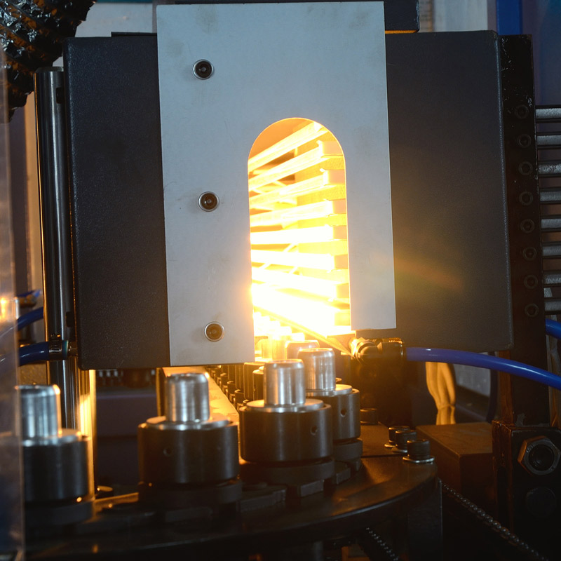 1. It adopts microcomputer control system, which has manual and automatic modes, simple operation and stable performance. 2, using infrared lamp heating, strong penetrating power, preform rotation heating, uniform, fast and reliable